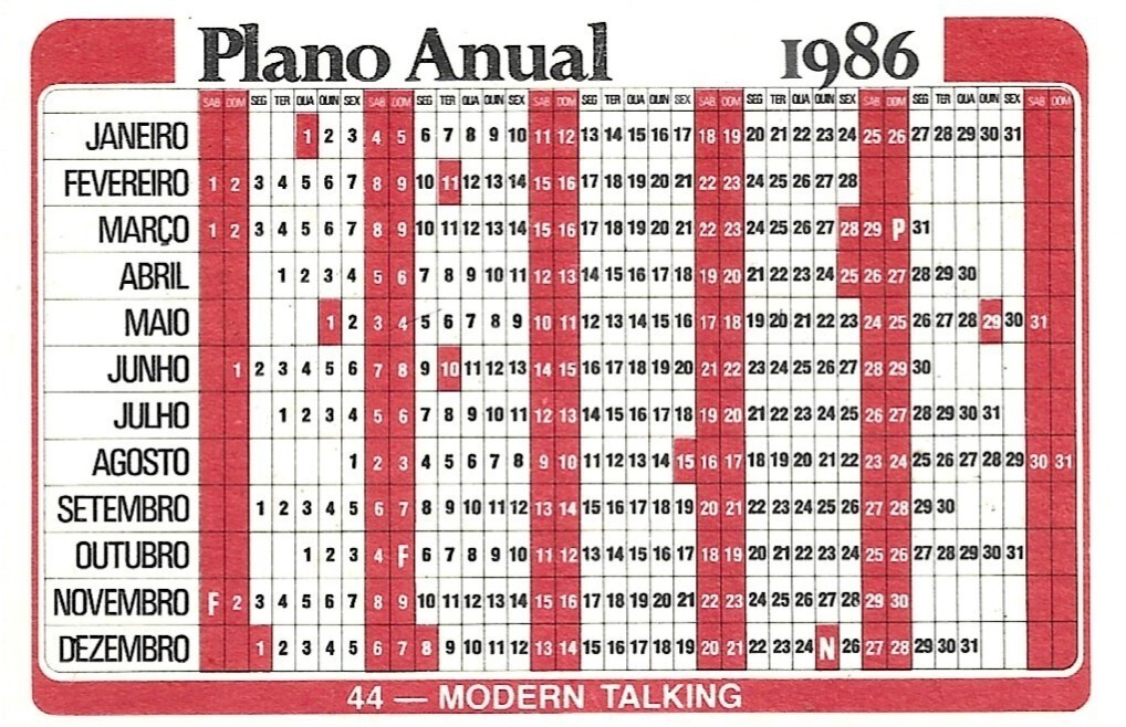 ⭕VTG card pocket calendar 1986 MODERN TALKING Portugal group music singer