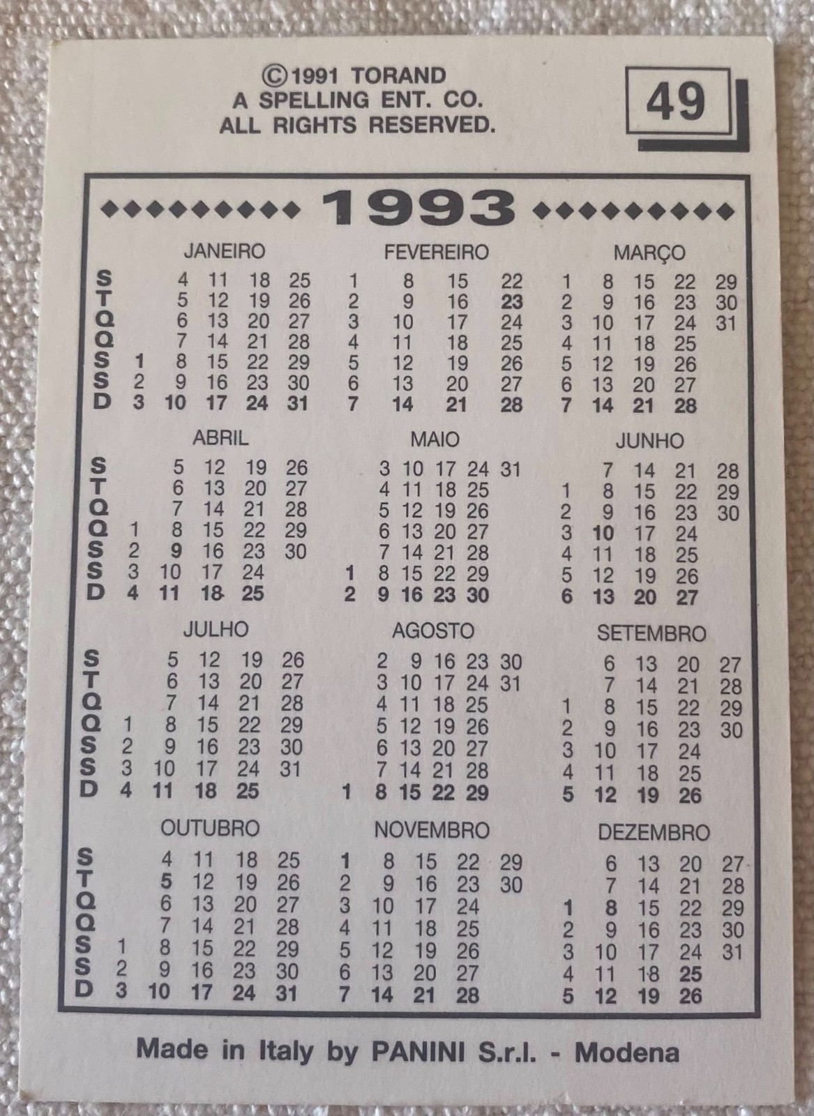 ⭕vtg pocket calendar 1993 PANINI BEVERLY HILLS 90210 N.º 49 impala