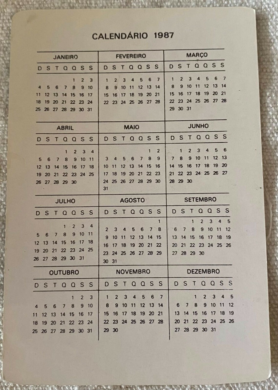 Pocket calendar used em estado excelente (sem manchas, sem dobras):