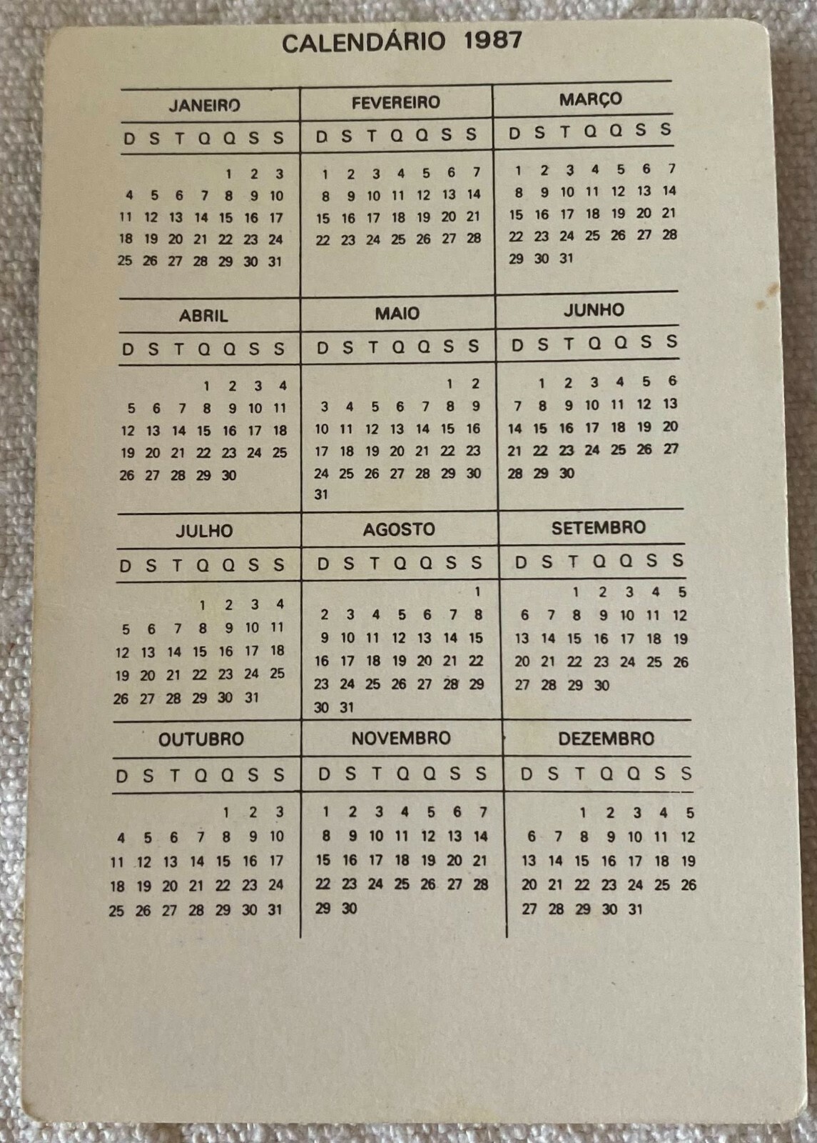 Pocket calendar used em estado excelente (sem manchas, sem dobras):
