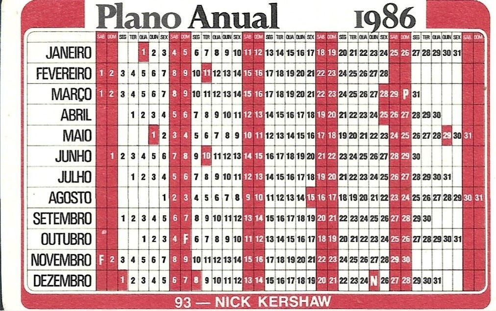 ⭕VTG card pocket calendar 1986 NICK KERSHAM Portugal group music singer