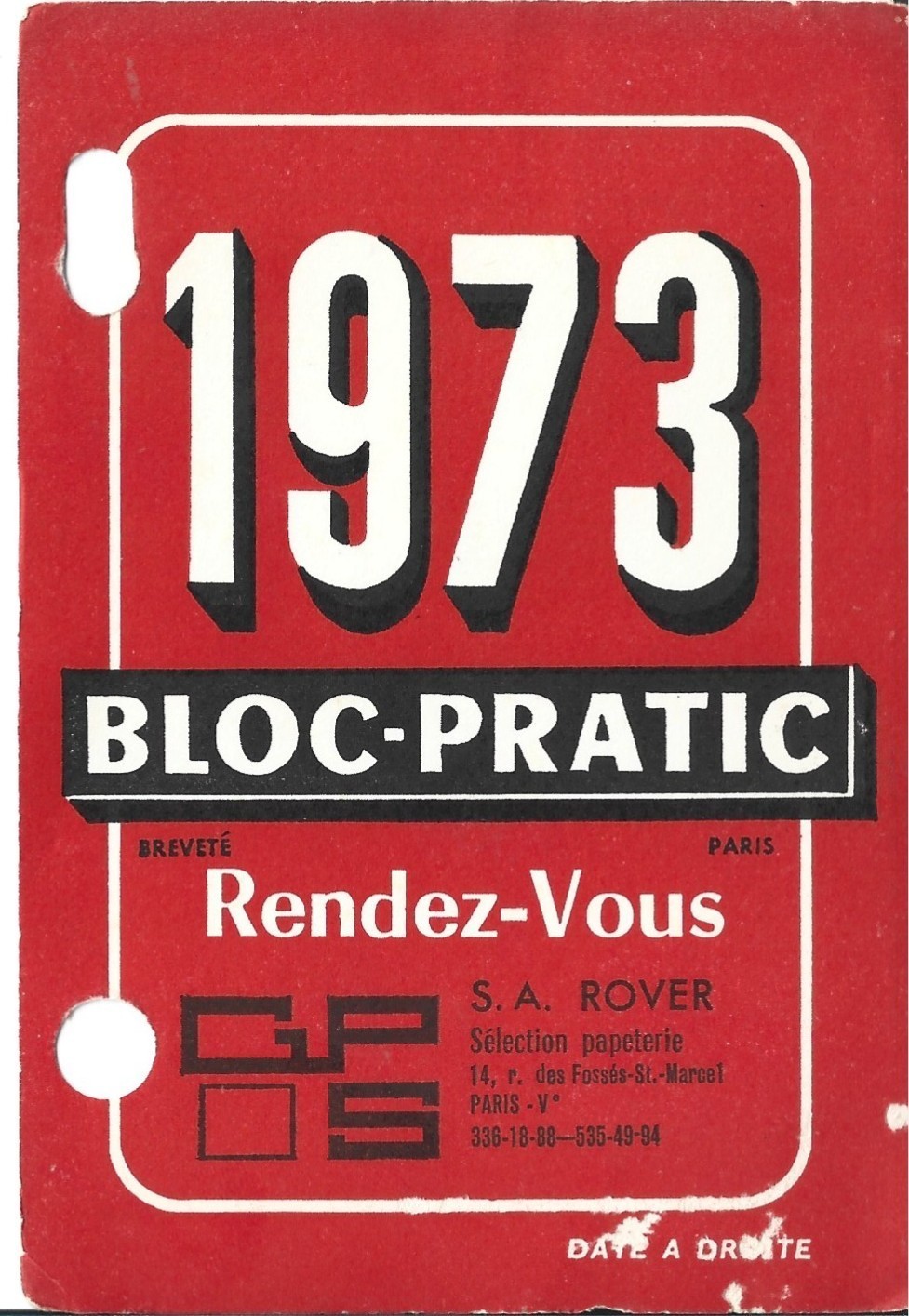 ⭕⭕VTG, Pocket Calendar 1973 BLOC-PRATIC France