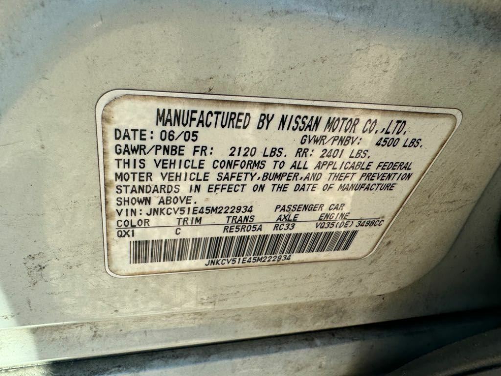 | Donor VIN: | JNKCV51E45M222934 |