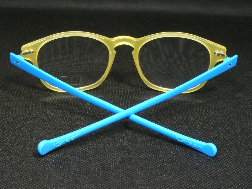 iGreen V4.01 C10 Transparent Yellow Sheen /Blue EYEGLASSES GLASSES Hi-Tech FRAME. (N644) iGreen is a unique product line which combines style and technology in an unprecedented collection! The new and revolutionary polymer at its core gives it flexibility, lightness, and resistance which have never before been seen, offering sensational comfort. iGreen means style and is distinctively trendy and vibrant. The Chamaleo-ICG system and the interchangeable temples let you customize your glasses, playing with the colors and making them a truly personal accessory which is refined and elegant. Despite its lightness and flexibility iGreen is durable and resilient, the ideal companion for everyday life! Returns are always FREE for any reason. If you don't like it, simply click "Item no longer needed