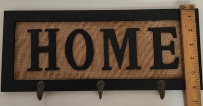 Home Sign w/Hooks Wood Burlap Keys Rustic and 49 similar items