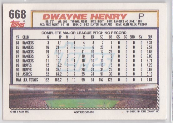 M) 1992 Topps Baseball Trading Card - Dwayne Henry #668