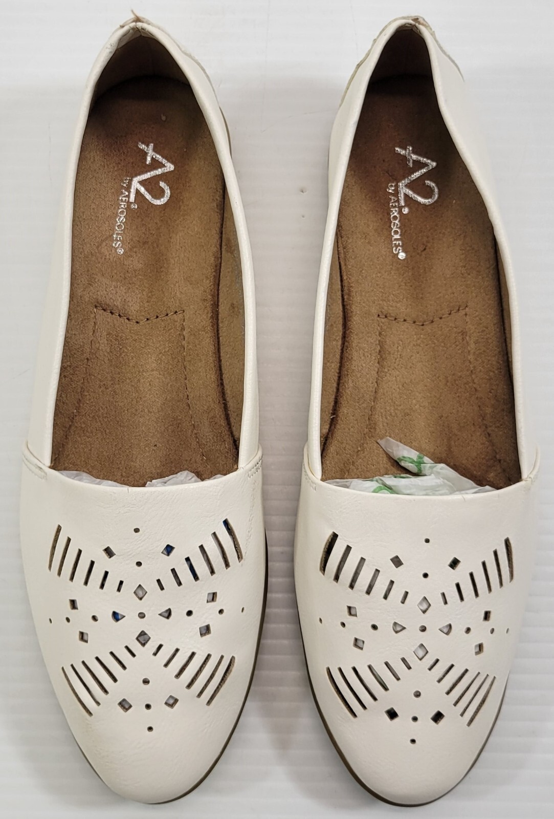 *MT) Women A2 Aerosoles Trend Right Laser Cut White Loafer Flat Shoes Size 8.5M