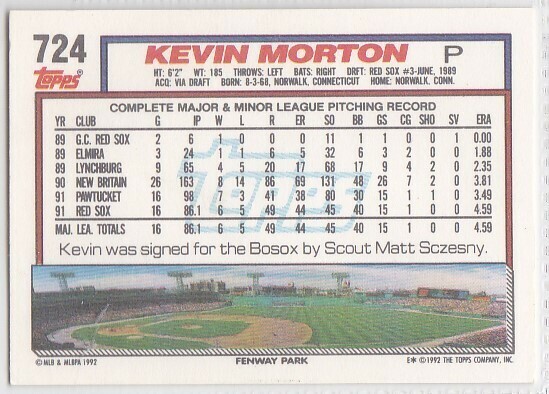M) 1992 Topps Baseball Trading Card - Kevin Morton #724