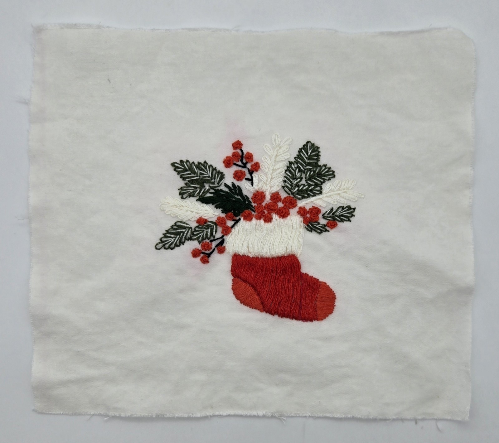 Vintage Embroidered Christmas Stocking Floral Design 9x9.5 Handmade Fabric Art