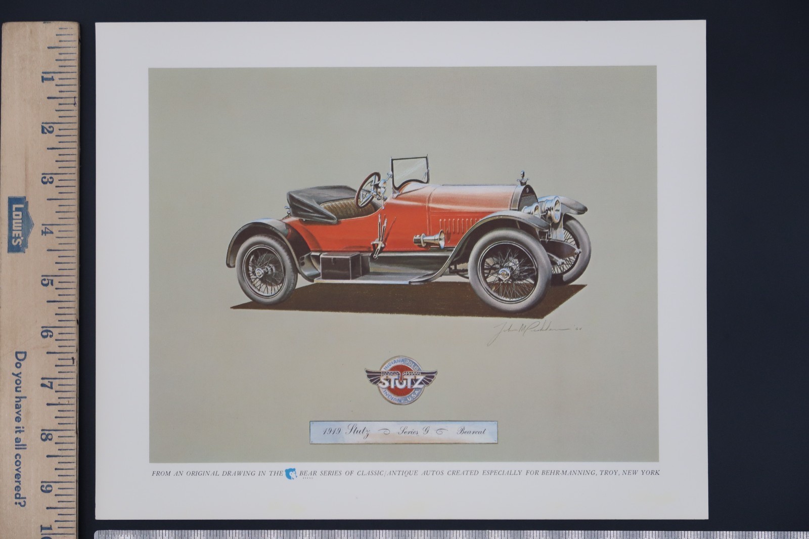 Vtg Bear Series Print Classic Autos Behr-Manning Troy NY 1919 Stutz Bearcat