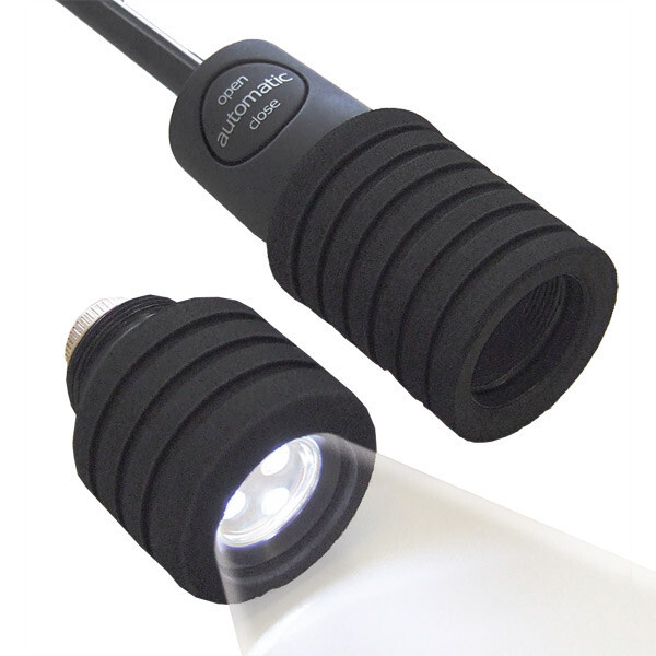 This umbrella is identical to the Light Trek Automatic, but this model has an integrated long-lasting, detachable bright LED-flashlight in its handle.