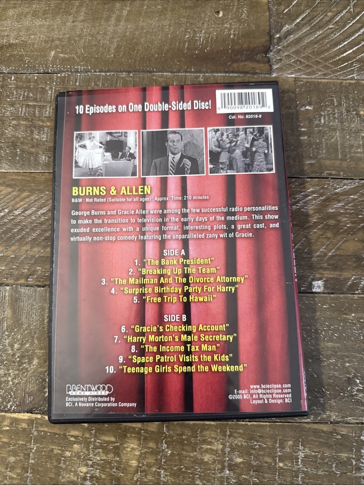 The Burns and Allen DVD features episodes from the classic TV show "The George Burns and Gracie Allen Show." This set includes hilarious comedy skits, witty banter, and memorable moments from the iconic duo. With the convenience of a DVD format, viewers can enjoy the timeless comedy of George Burns and Gracie Allen in the comfort of their own home. Perfect for fans of vintage television or those looking for a good laugh, this DVD set is a must-have collection for any comedy enthusiast.