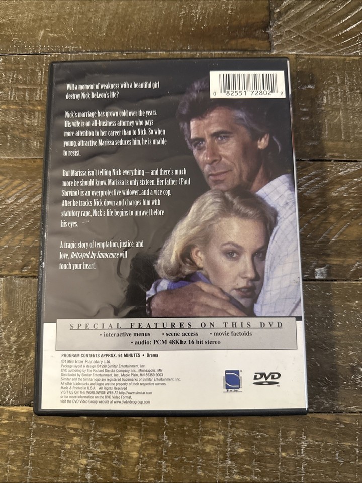 "Betrayed by Innocence" is a drama film released on DVD in 1998. Starring Paul Sorvino, the movie follows a compelling story that explores themes of betrayal, trust, and redemption. With a rating of NR, this emotionally charged film is sure to captivate viewers with its gripping plot and powerful performances. Perfect for fans of intense dramas, "Betrayed by Innocence" is a must-have addition to any DVD collection.