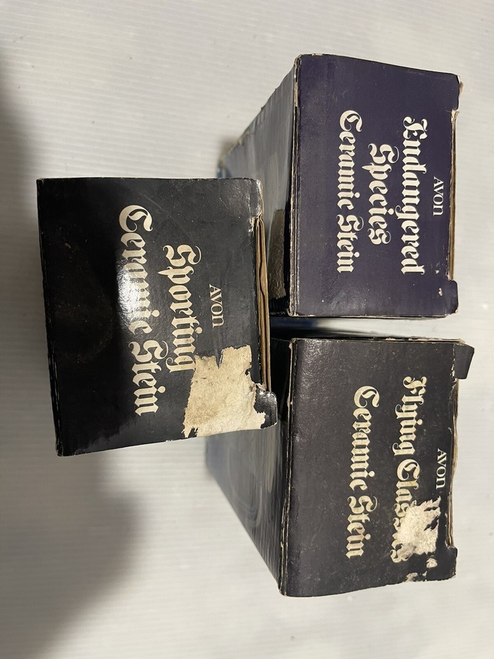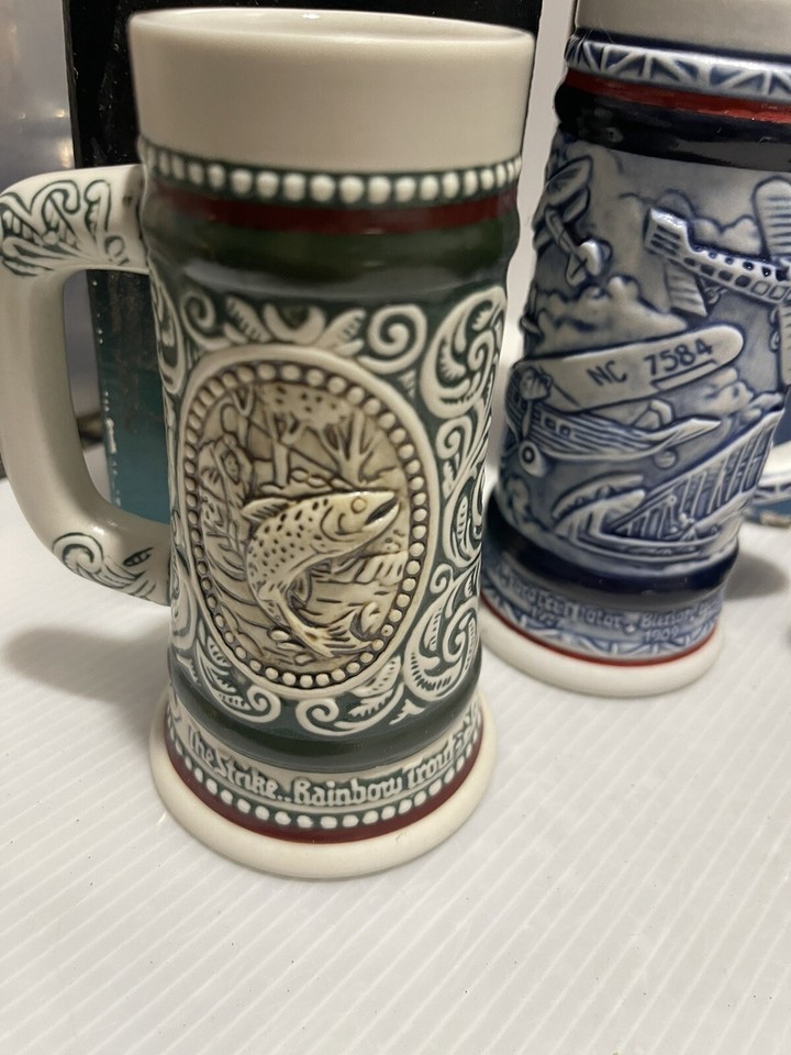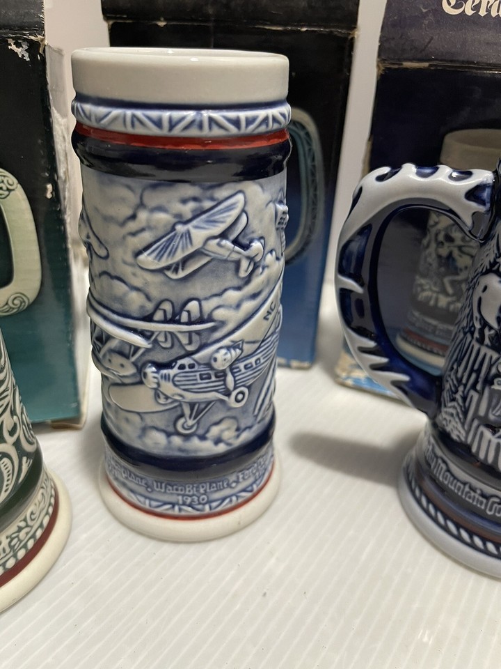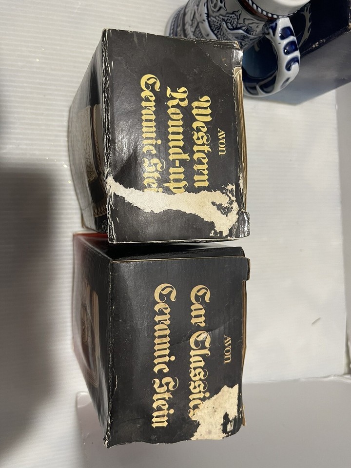 Lot of 6 Vintage Avon Mini Beer Stein Original Box Classic Cars Ships Planes