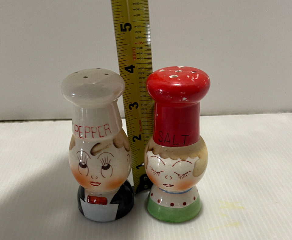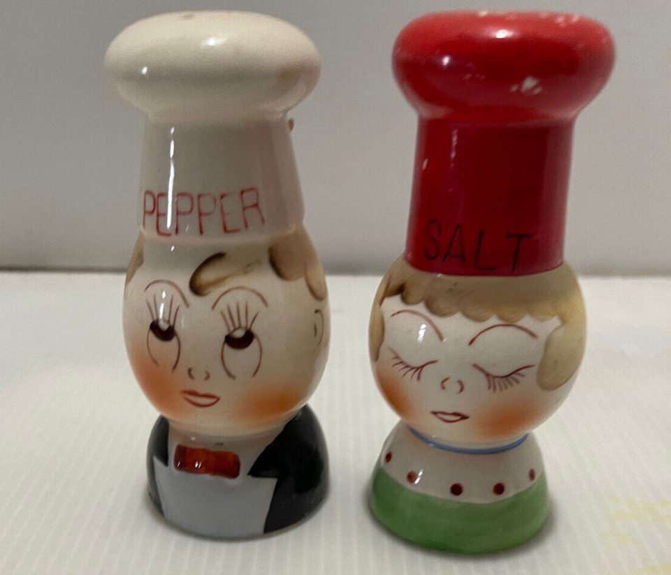 Vintage Napco Japan Anthropomorphic Egg Head Him Her Chef Salt & Pepper Shaker