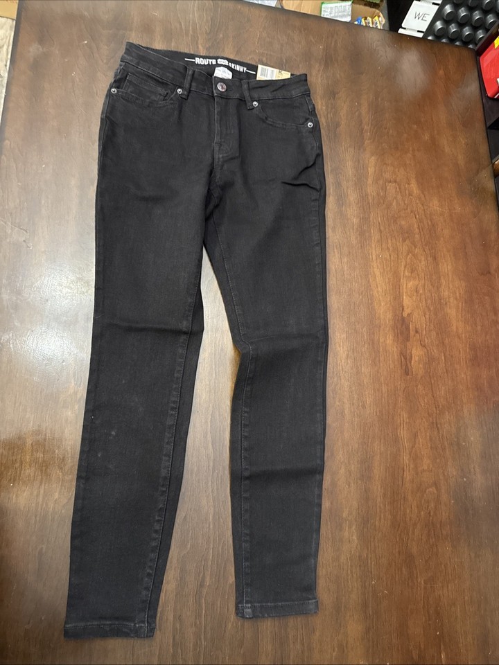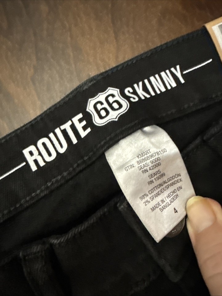 The Route 66 High Rise Jeggings in size 4 Short are stylish and comfortable jeans for women. These jeggings are designed with a high rise waist for a flattering fit and are made in a classic black color. The jegging style offers a blend of both leggings and jeans, making them a versatile and trendy option for everyday wear. Made by Route 66, these jeggings are sure to become a staple in any woman's wardrobe.