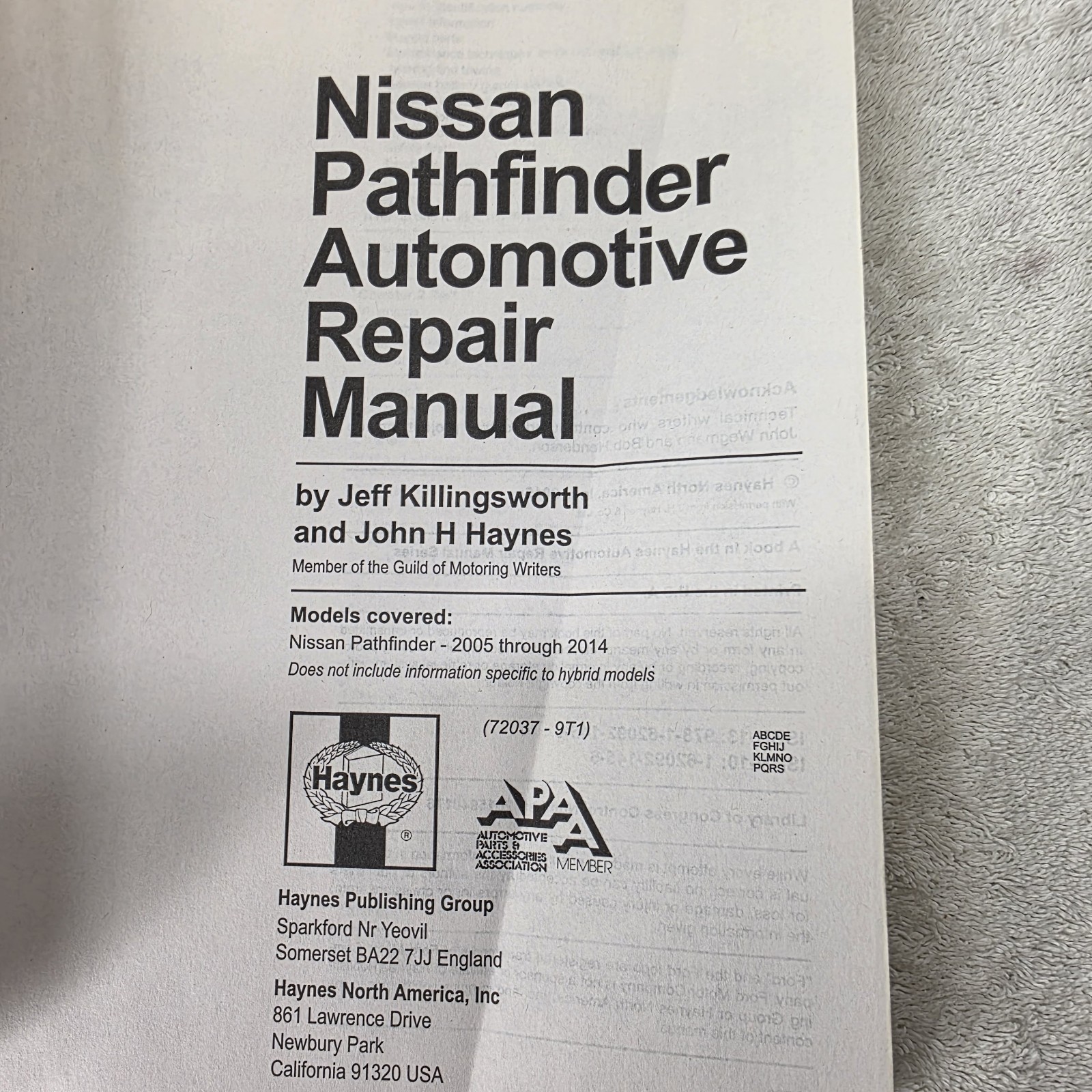 Nissan Pathfinder 2005 Thru 2014) Haynes Repair Manual |