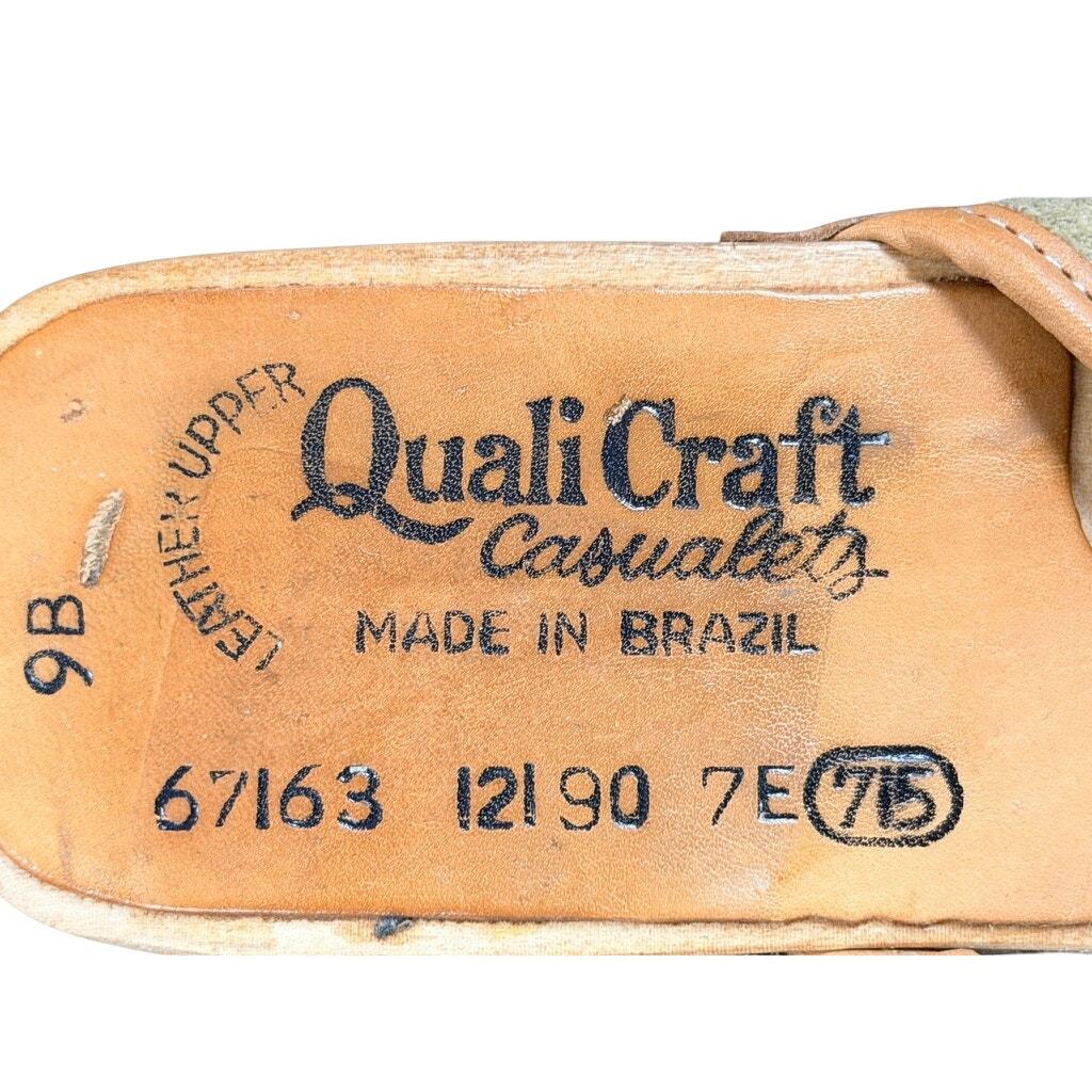 Made by QualiCraft, a respected mid-century American shoe brand known for stylish, high-quality footwear often made in Brazil during the 1970s. This pair exemplifies their signature boho-luxe clog design.