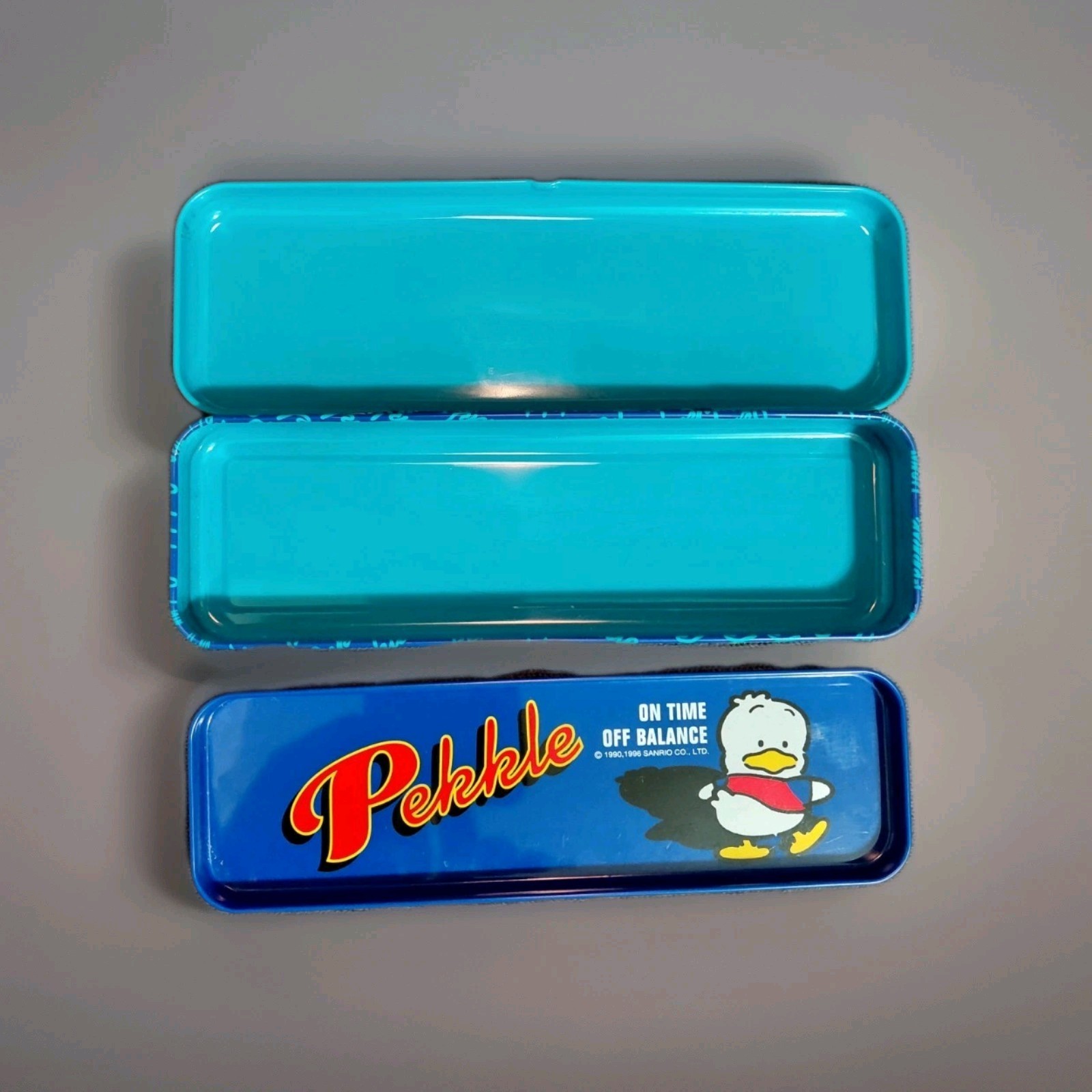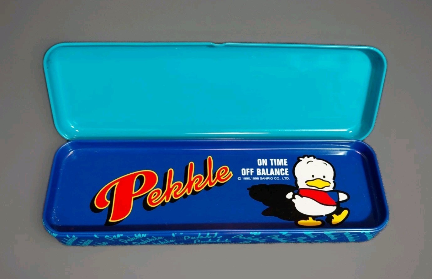 The Vintage 1996 Sanrio Pekkle Pencil Tin Metal Box is a collectible animation merchandise item originating from Japan.