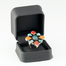 Gorgeous Sterling Silver Cluster Ring with a mix of Turquoise and Orange Spiney.