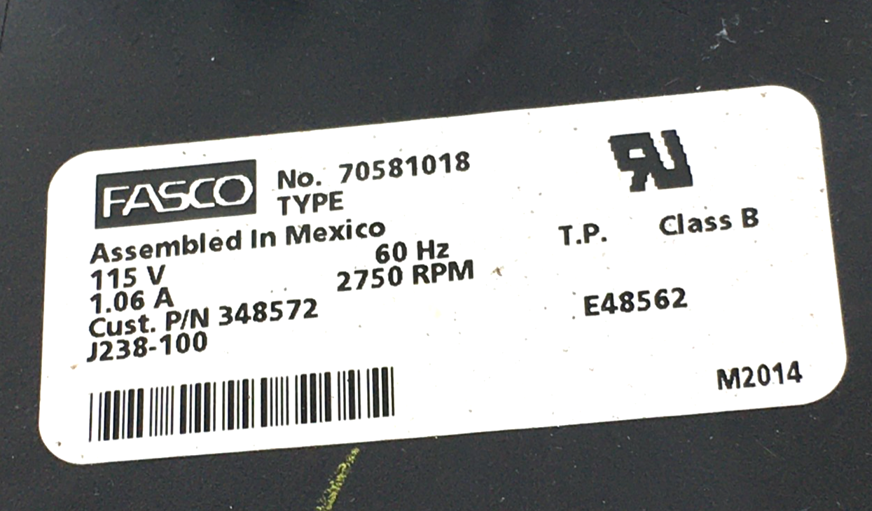 This is FASCO 7058-1018 Draft Inducer Blower Motor 348572 J238-100 115V 2750 RPM used part.