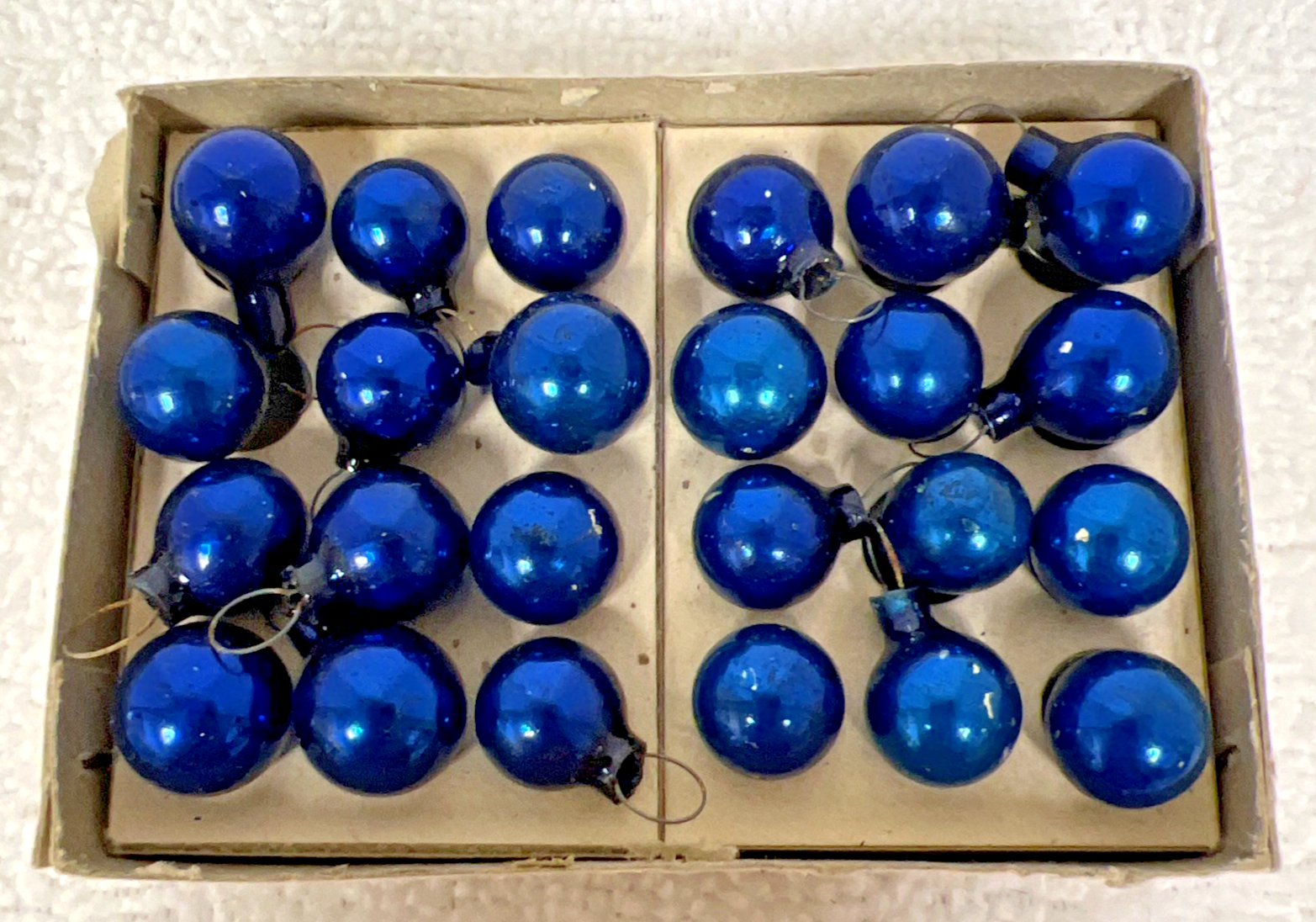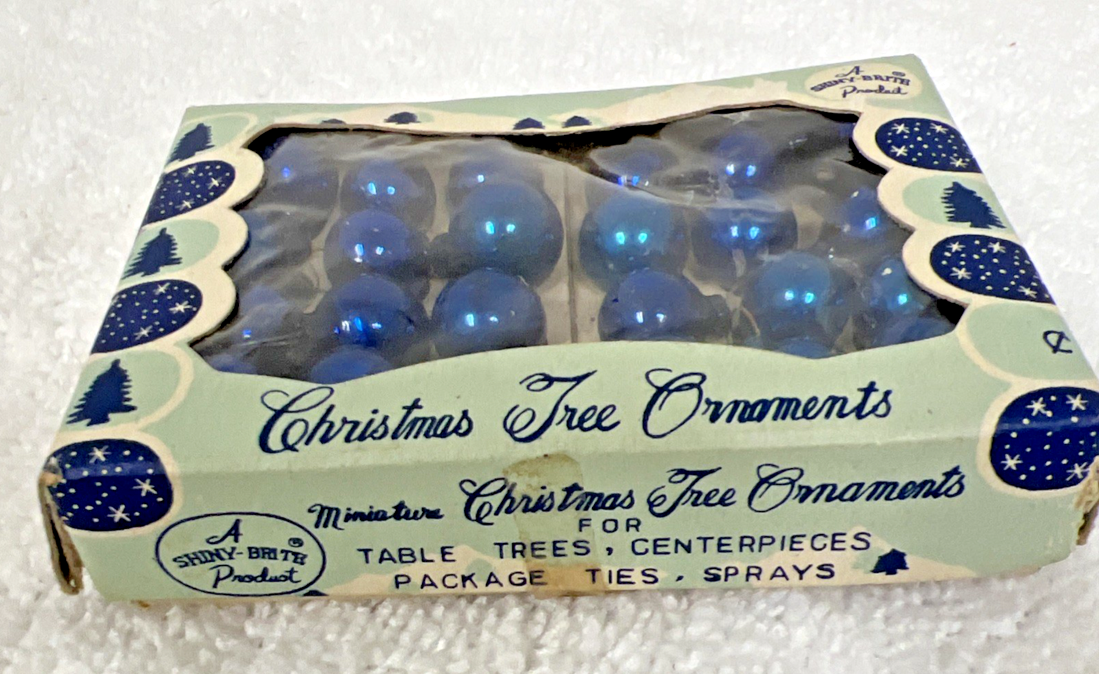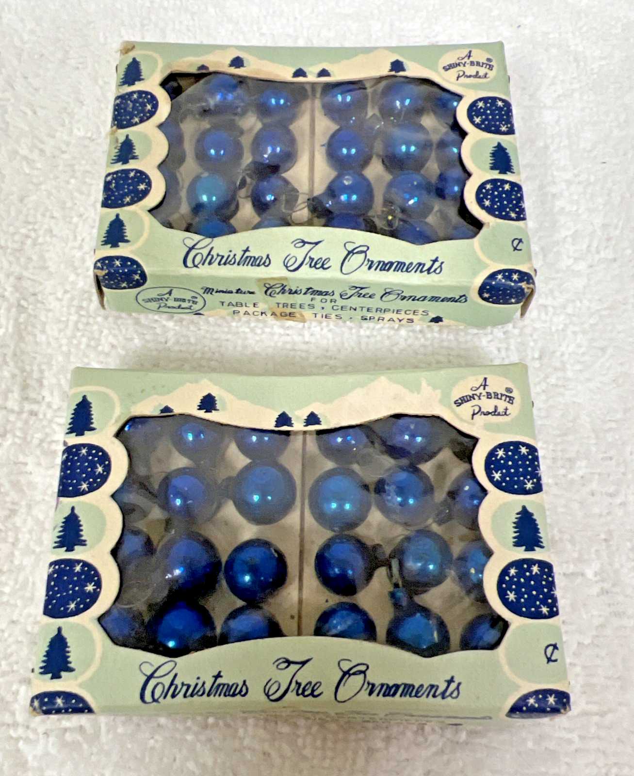 Vintage Shiny Brite Dark Blue Glass Christas Balls 24 1/2" 12MM Original Box there might be a few paint loss spots, but overall nice shape boxes have wear but are whole. We have 2 for sale price is for 1 but we can combine shipping