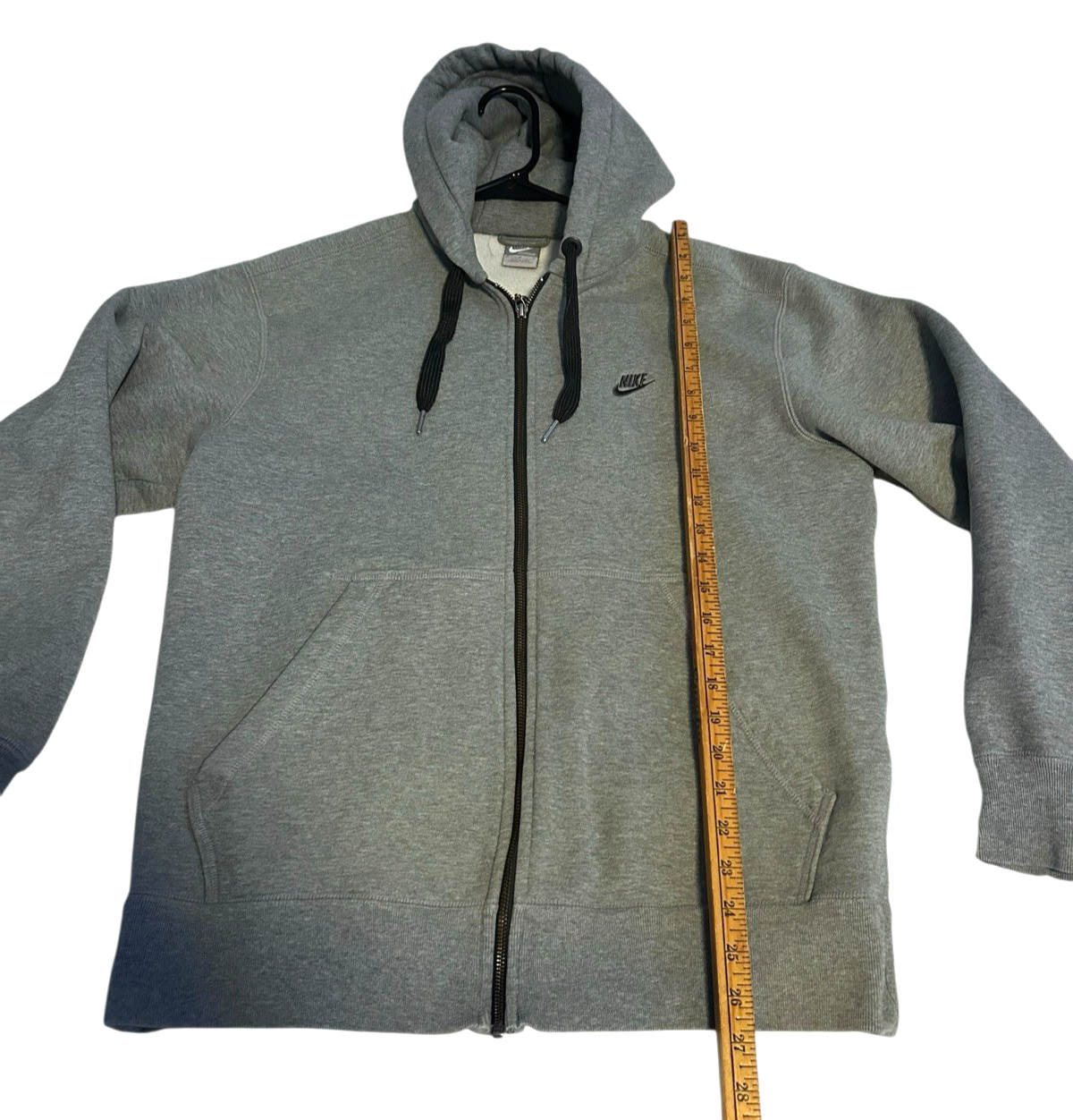 The Vintage Nike Sportswear Gray Tag Hoodie Hooded is a stylish and comfortable addition to any man's wardrobe. Featuring a classic gray color and a zip closure for convenience, this hoodie is perfect for casual wear or activewear. The iconic Nike Sportswear product line ensures quality and style, making this hoodie a timeless choice for any sneaker enthusiast. With a unique sneaker pull tab zipper accent, this hoodie combines retro aesthetics with modern functionality for a versatile and heavy-weight option.