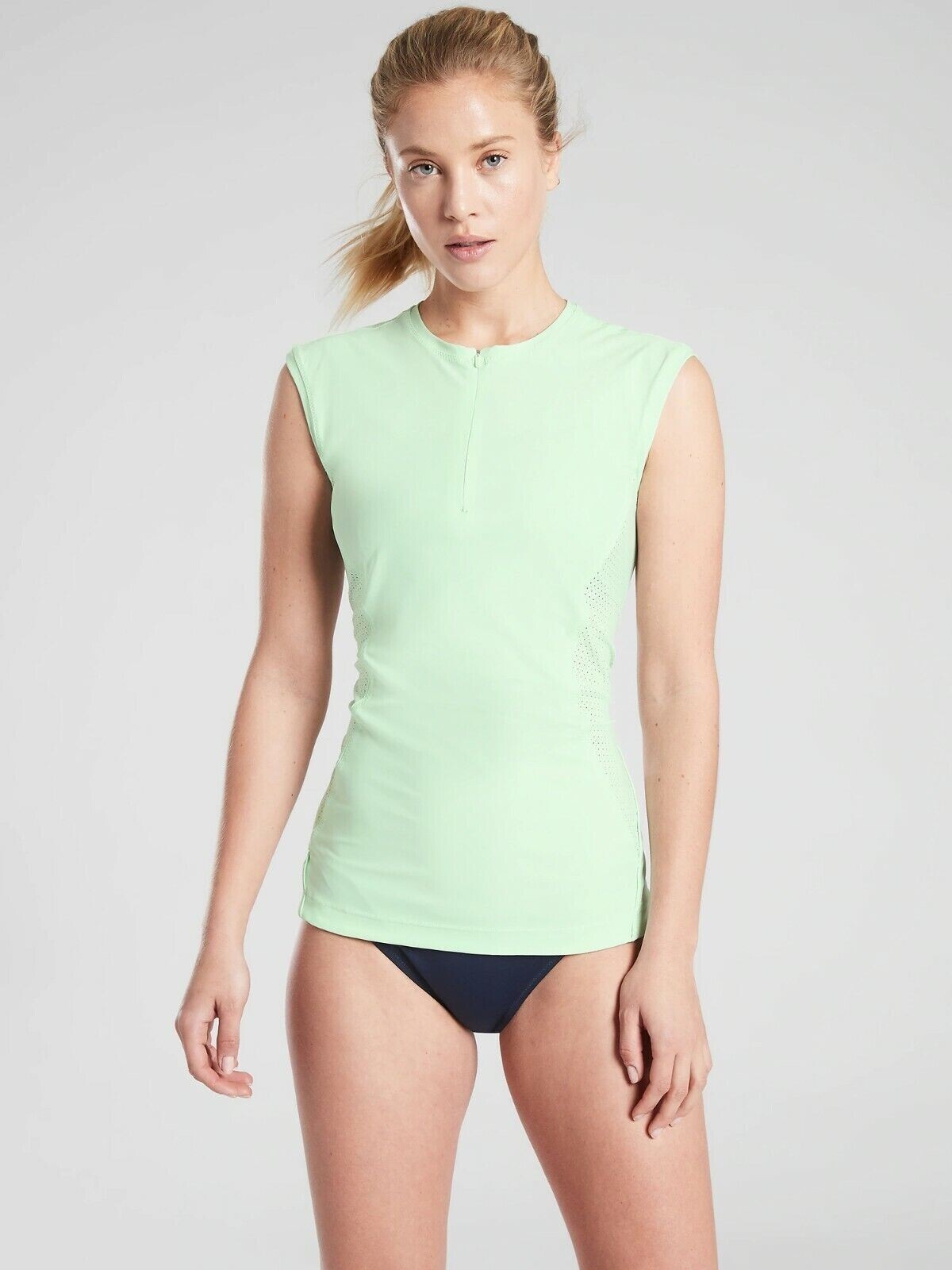 Athleta Pacifica II Swim Top Rash Guard 1/4 Zip Mint Sorbet Sleeveless Size M