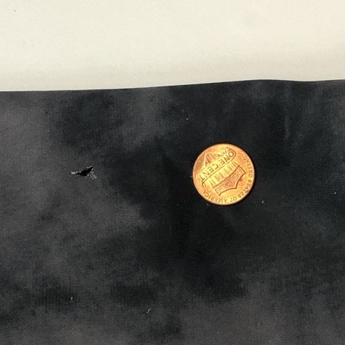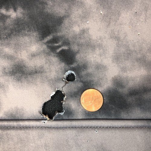 The Sweatshirt is Distressed with holes in the middle front and one on the right sleeve