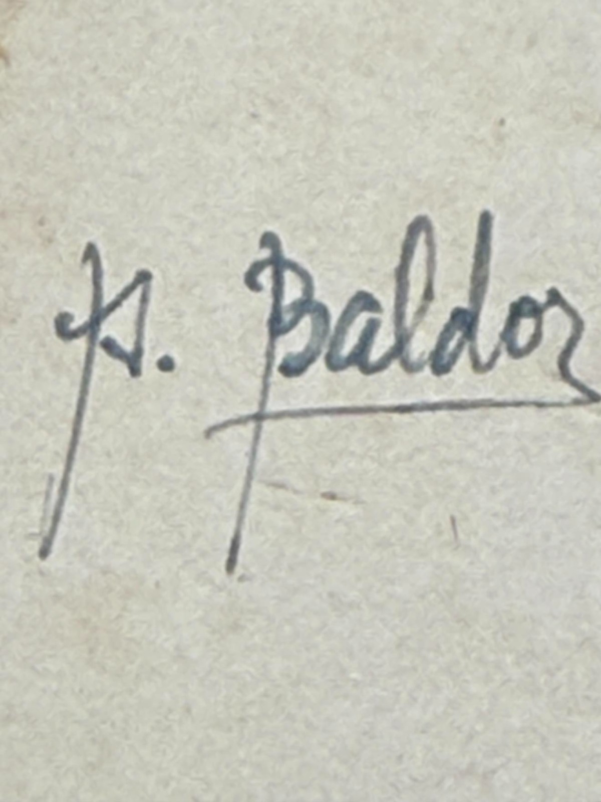 ?? Notably, the inner page bears what appears to be a handwritten signature: "A. Baldor", in ink. While its authenticity has not been formally verified, the style, placement, and context suggest it may have been signed by the author himself.