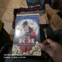 The product is a VHS tape of the 1997 live-action animated film "101 Dalmatians" directed by Stephen Herek. The VHS is in NTSC signal standard and has a G rating, making it suitable for children and families. The leading role is played by Glenn Close, bringing a different twist to the classic story. This edition comes in a clam shell packaging, adding to the nostalgic appeal of the movie for fans of all ages. Clamshell is worn and has a stain on Clamshell case check pics