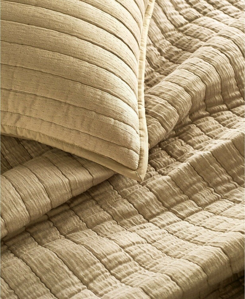Donna Karan Casual Luxe 3P Channel Stitched Full Queen Quilt Shams Set Gold NIP