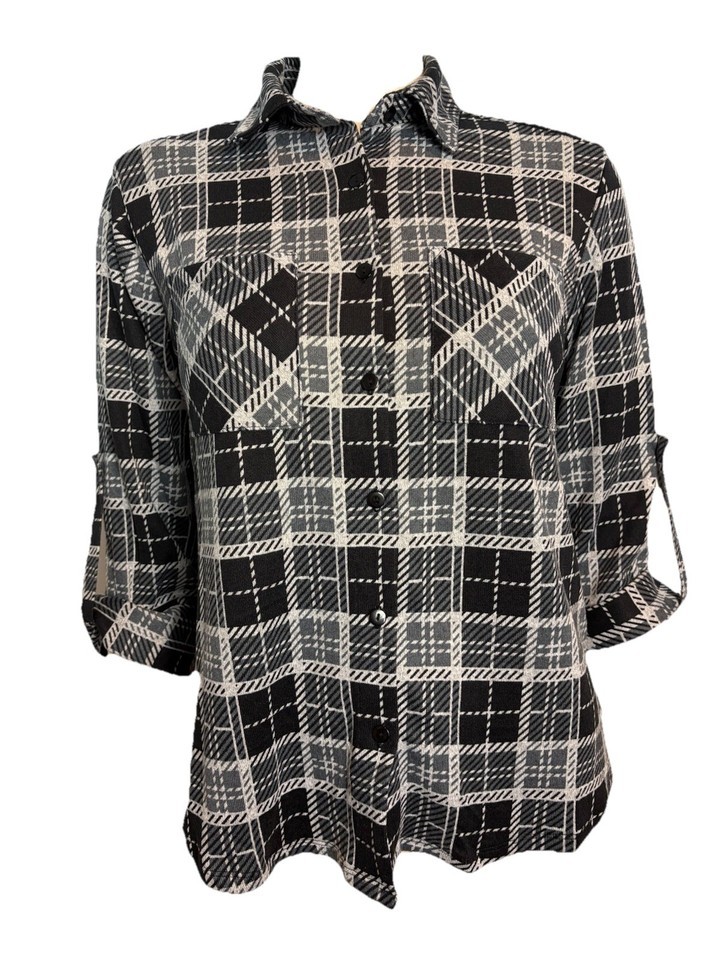 NWT Notations Black Plaid Knit 3/4 Sleeve Blouse Size Sm