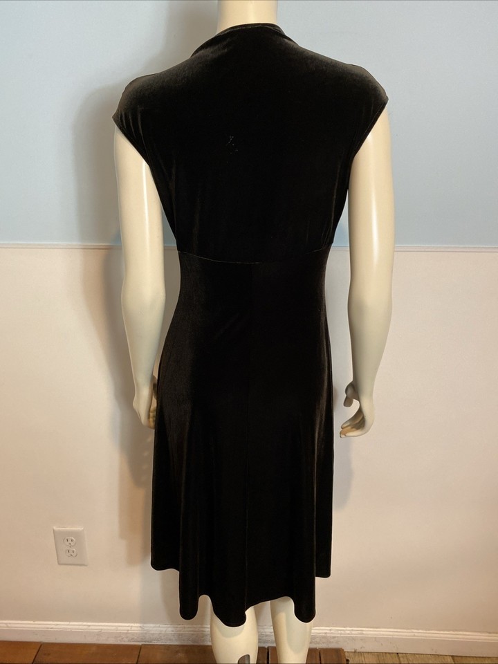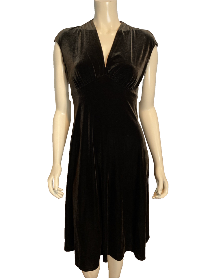 Lizzatti Dark Brown Velour V Neck Sleeveless A Line Dress Size 10