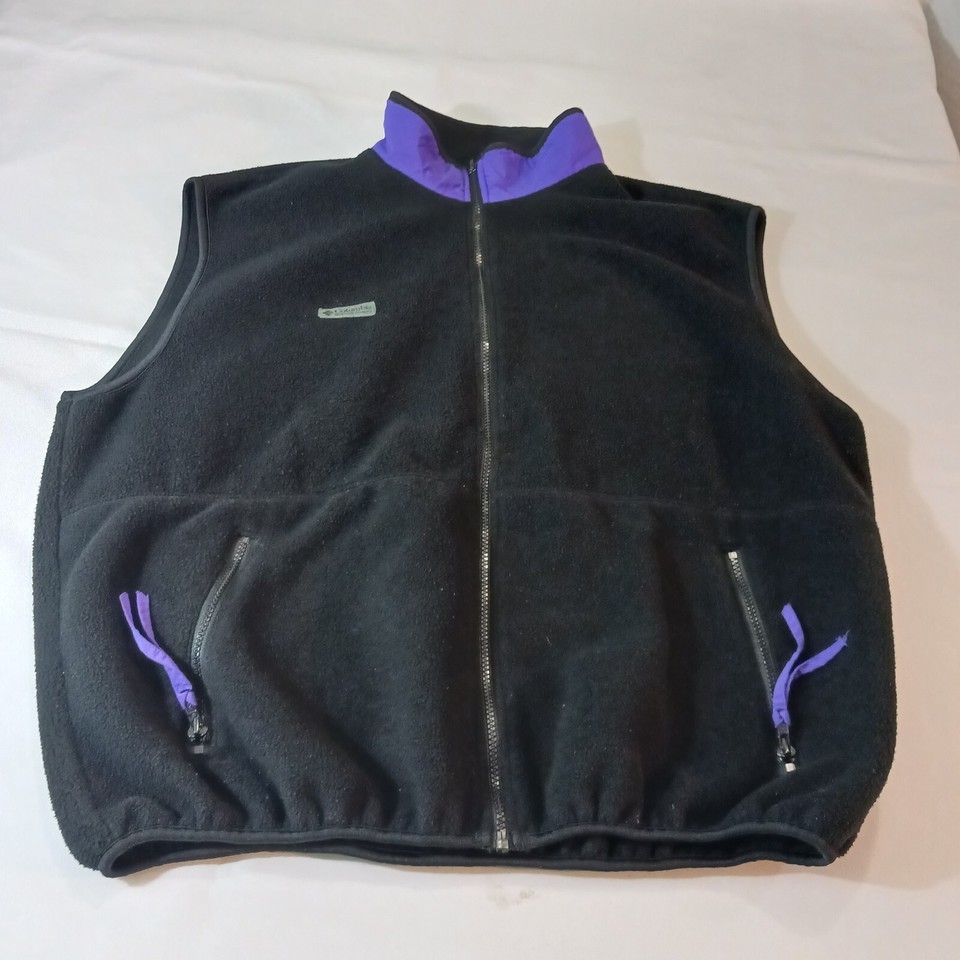 Vintage Columbia Men's Black & Purple Full Zipper Fleece Lined Vest Size XL