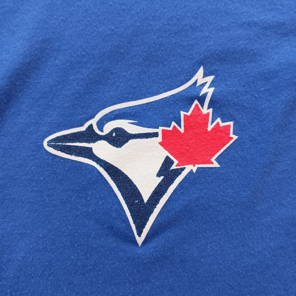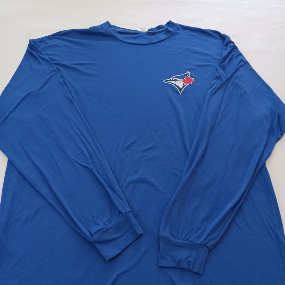 The product is a pre-owned men's blue cotton blend T-shirt with long sleeves, size XL. It is made by the brand 4orte and has a crew neck. The shirt is suitable for activewear and is designed for baseball performance. The material is a blend of polyester and cotton, and it was manufactured in Canada.
