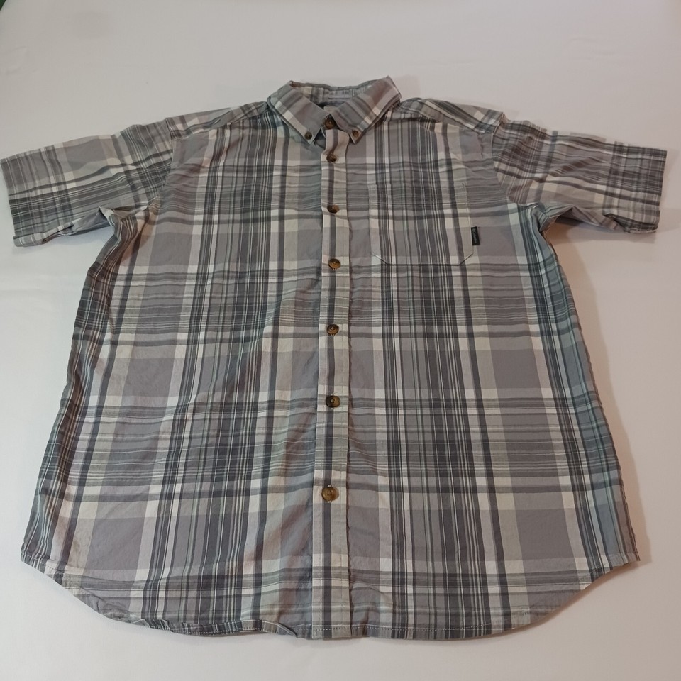 Columbia Shirts Men's M Gray Plaid Regular Fit Short Sleeve Button Down Casual