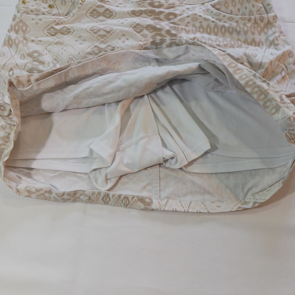 This Hearts of Palm skirt is a must-have addition to any wardrobe. The skirt features a white and brown design, with a measured waist of 39 inches for a comfortable fit. The pull-on closure makes it easy to wear, while the skort style adds a touch of fun to your outfit.