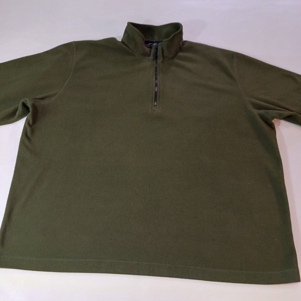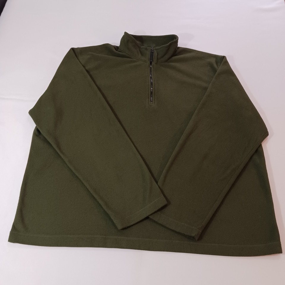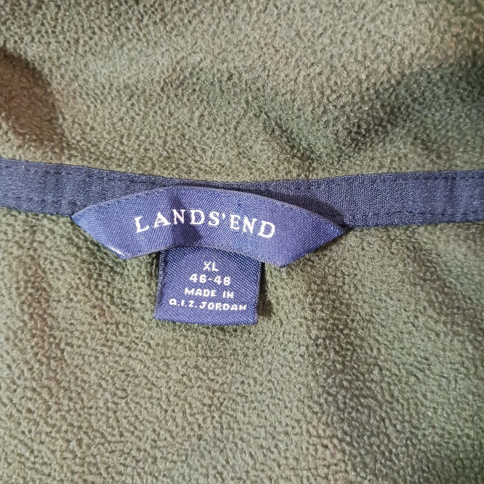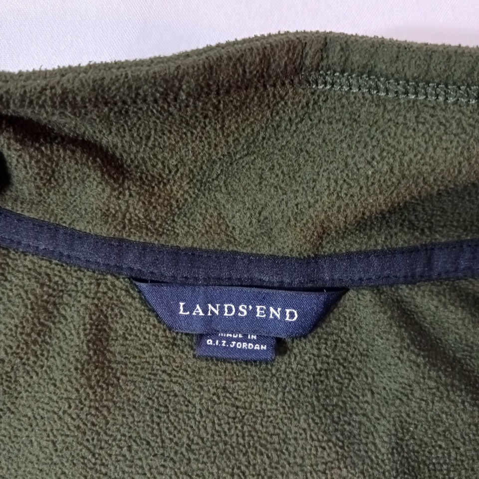 Lands End Men's ThermaCheck 1/4 Zip Pullover Fleece Green Sweatshirt Size XL