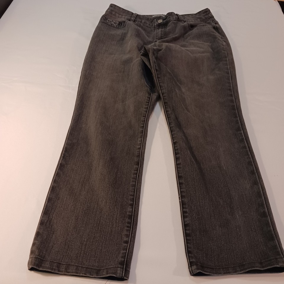 Chicos Platinum Denim High Rise Womens Black Jeans Straight Leg Measured Size 16