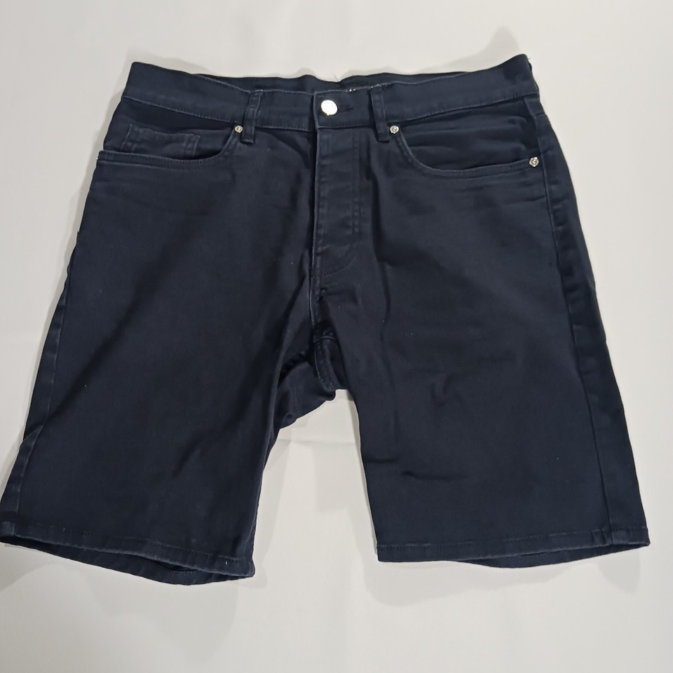 H&M RN#101255 Womens Blue Cotton Blend Slim Fit Button Fly Shorts Size 28 (30×9)