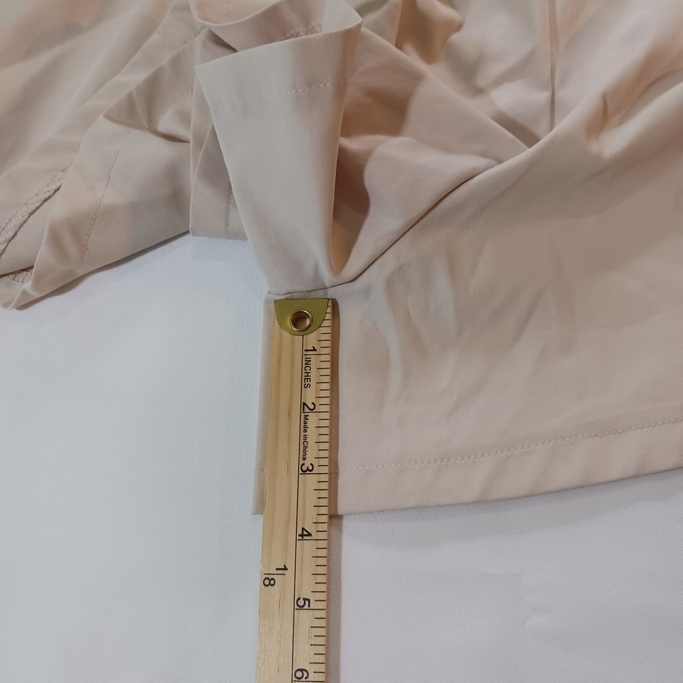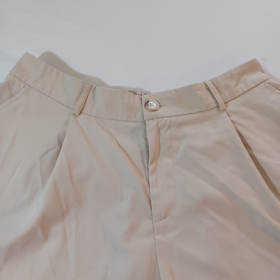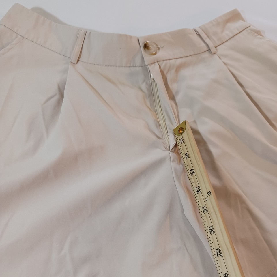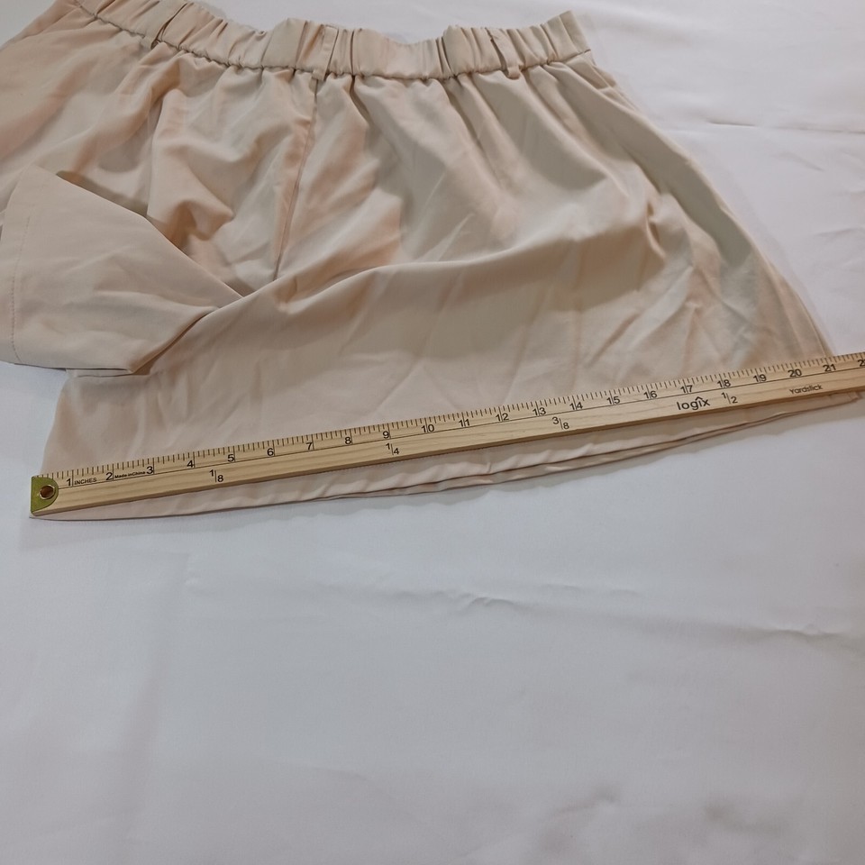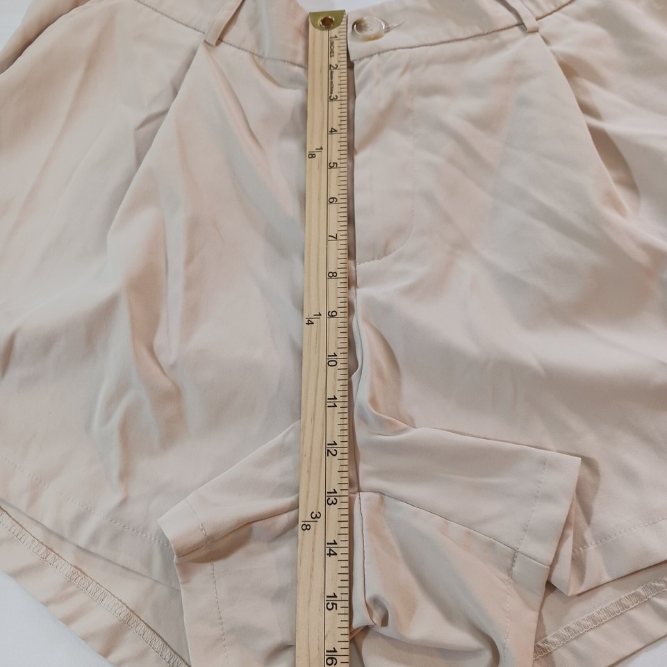 Elevate your wardrobe with these stylish Curve women's shorts in a charming tan/beige color. These pre-owned shorts feature a solid pattern, pleated front, and button accents. They are made of lightweight polyester fabric that is easy to care for and has stretch for added comfort.