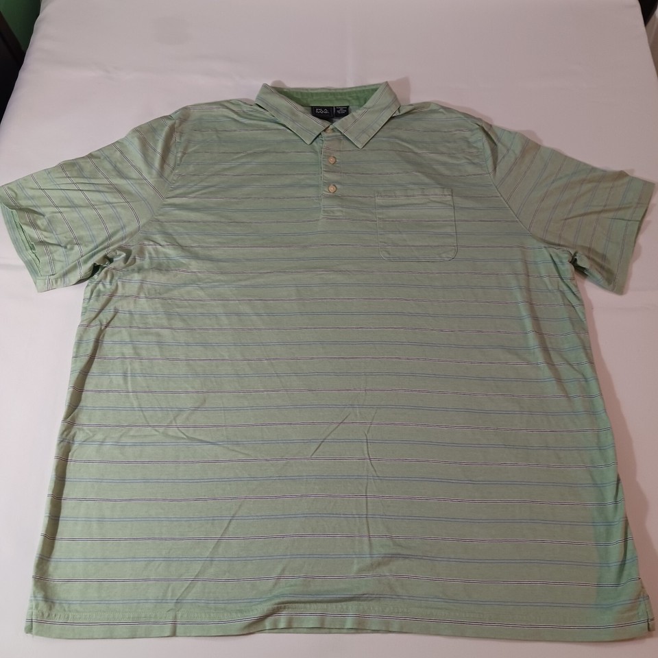Jos A Bank Traditional Fit Men Green Stripes Short Sleeve Cotton Polo Shirt 4XLT
