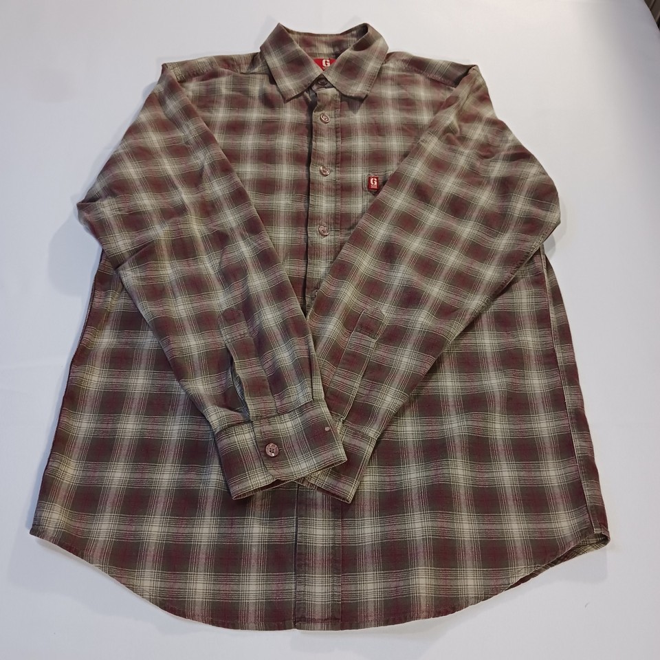 Guess Jeans M1476200 Men's Brown/Red Check Plaid Long Sleeve Button-Up Shirt S