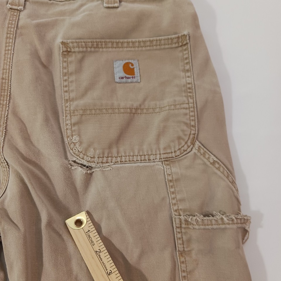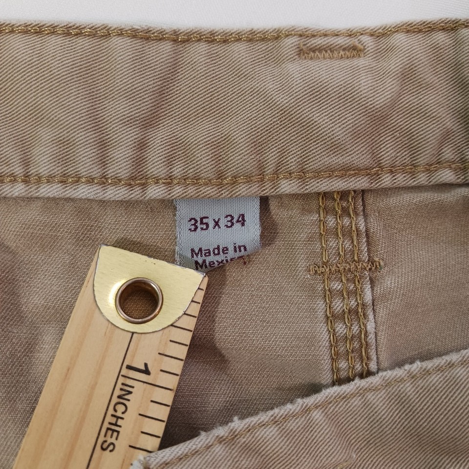 Carhartt Men's Tan/Khaki Cargo Utility Work Distressed Jeans Size 35x34