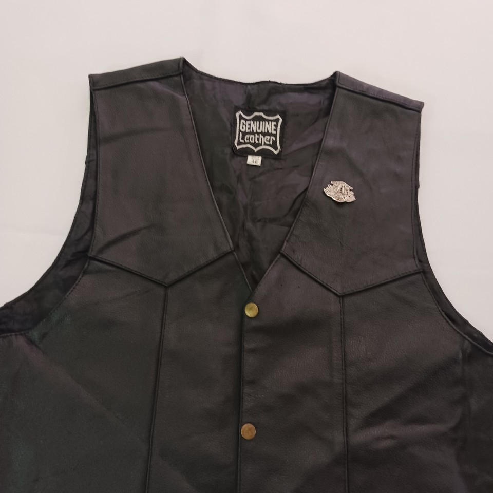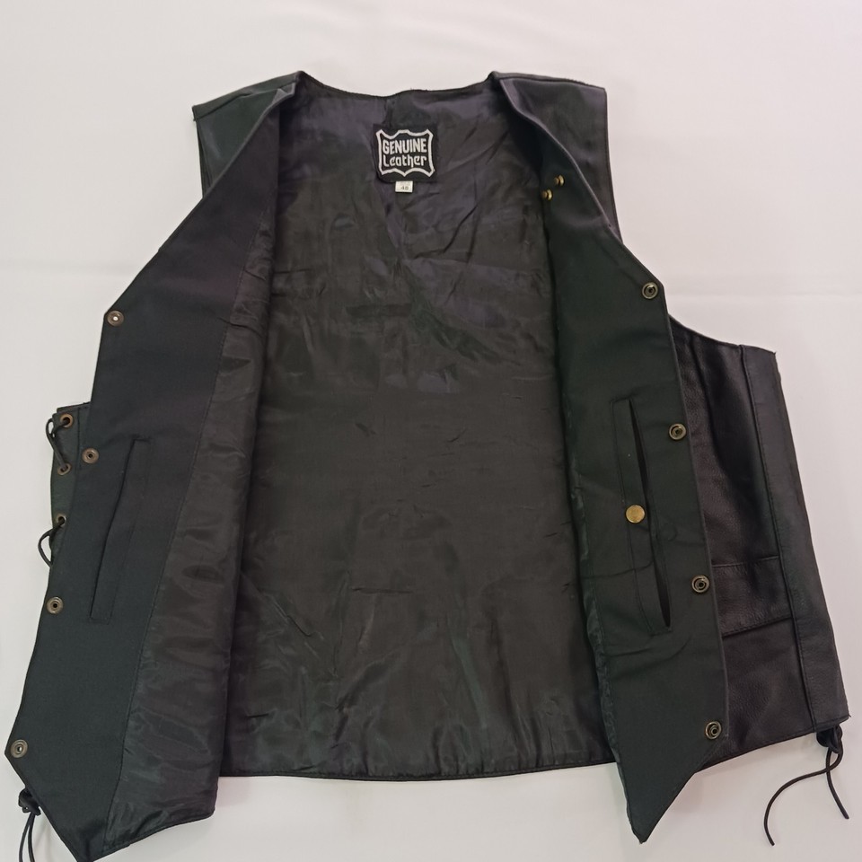 Genuine Leather Men's Black Real Leather Pockets Snap Button Vest Size 48