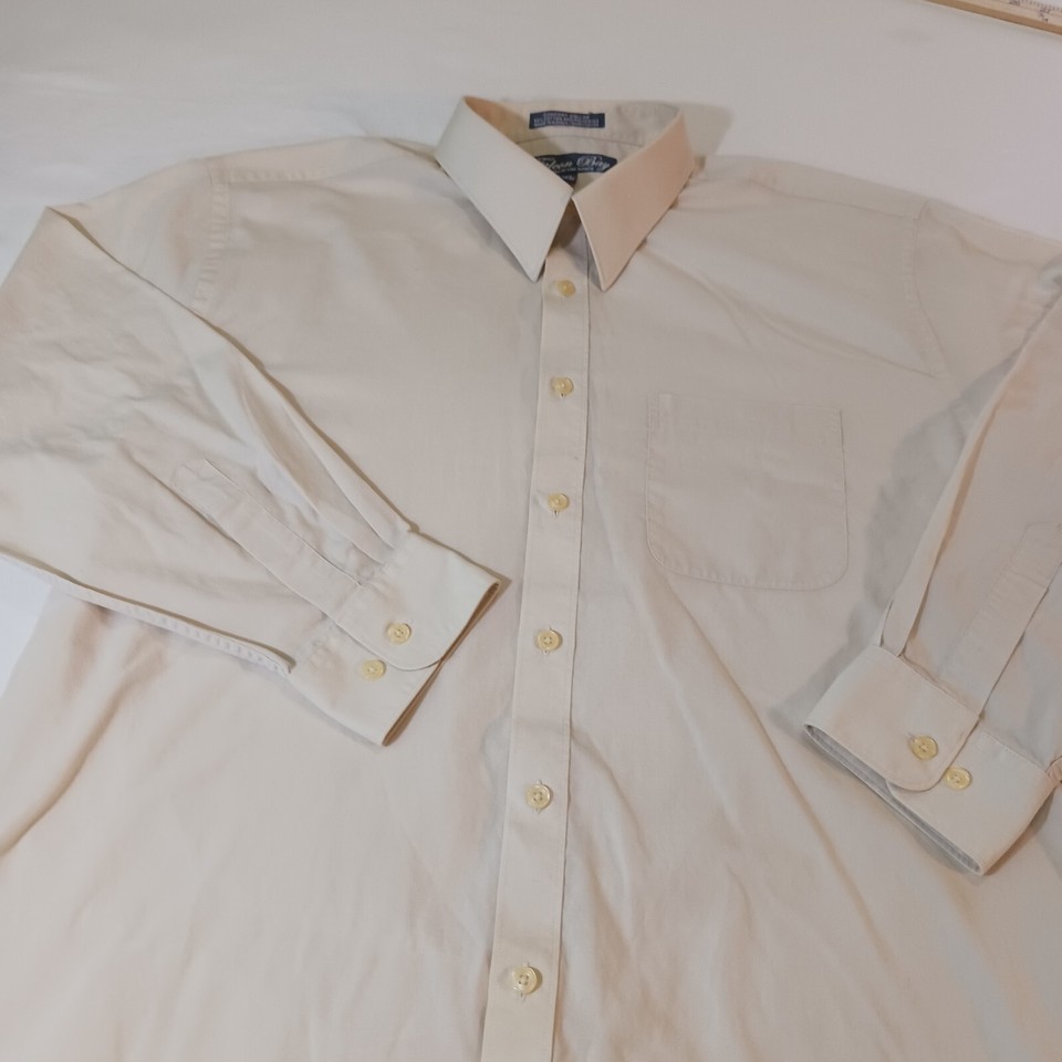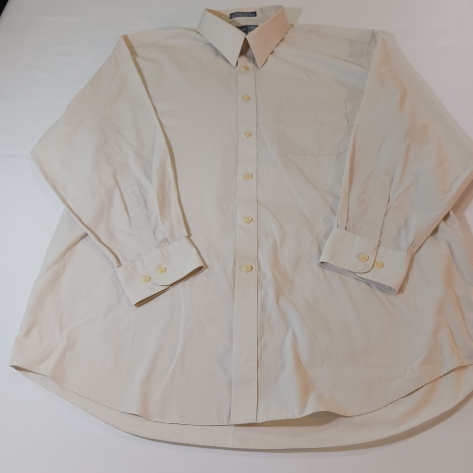 Falcon Bay Comfort Collar Men's Tan/Beige Cotton Blend Shirt Long Sleeve Size 17