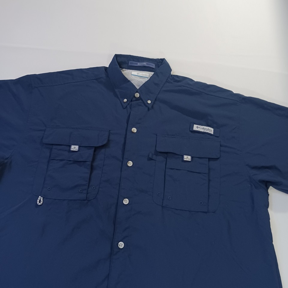 Columbia PFG Bahama II Men's LG Blue Button-Down Short Sleeve Shirt FM7047