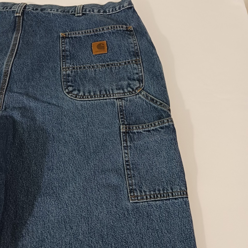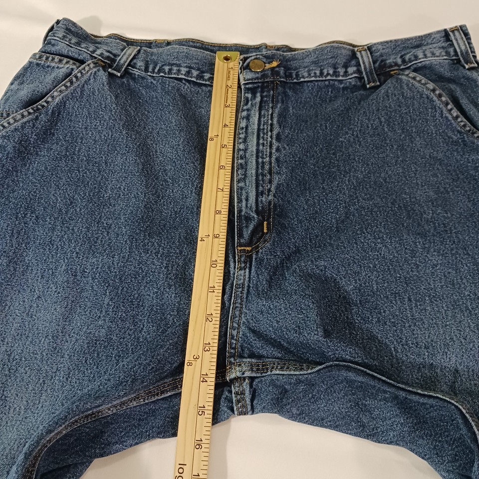 The Carhartt B13 DPS Dungaree Fit Men's 4030 Carpenter Blue Cotton Denim Jeans are a classic pair of high-rise straight-leg jeans designed for comfort and durability. Made from denim fabric with a medium wash, these jeans feature a button and zip closure with a logo accent, and come in a waist size of 40 inches. With the Carhartt brand known for quality craftsmanship, these jeans are designed for a dungaree fit and include functional pockets for practicality. This timeless piece embodies a USA theme and is a staple addition to any man's wardrobe.