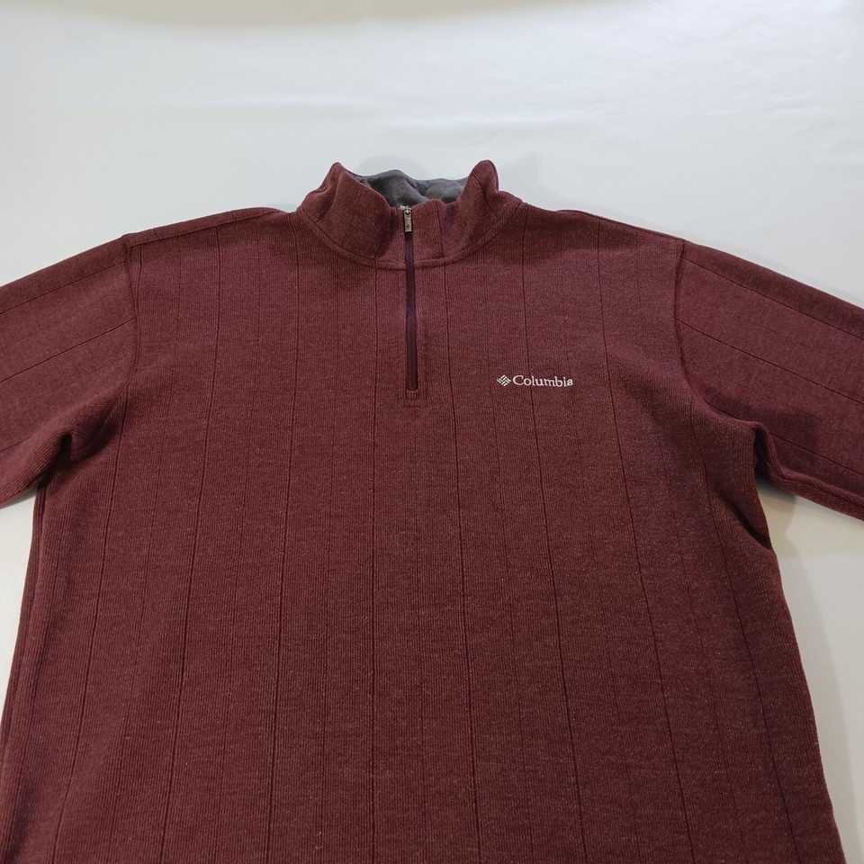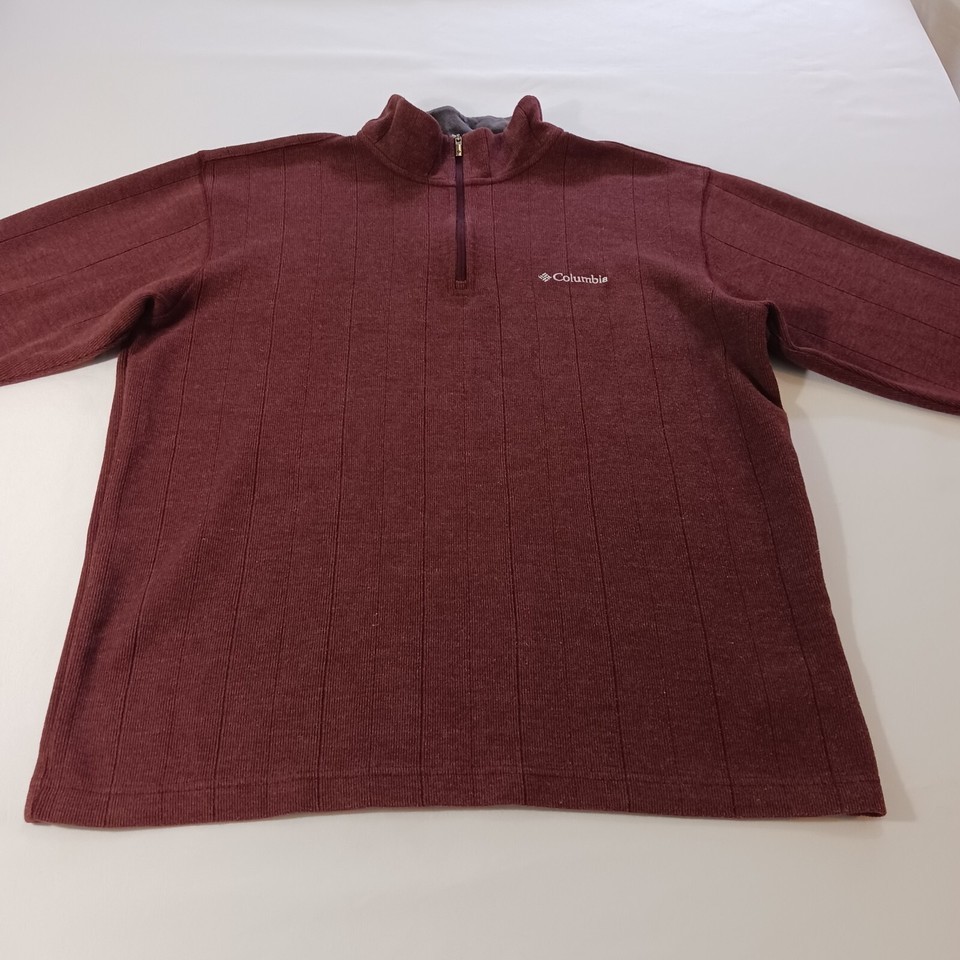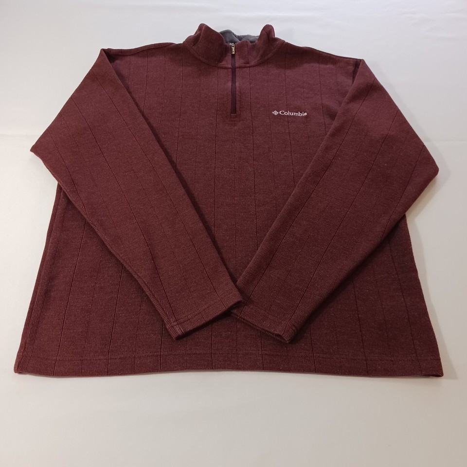 Columbia AM6779 Men's 1/4 Zip Red Cotton Blend Ribbed Cadet Collar Sweatshirt L